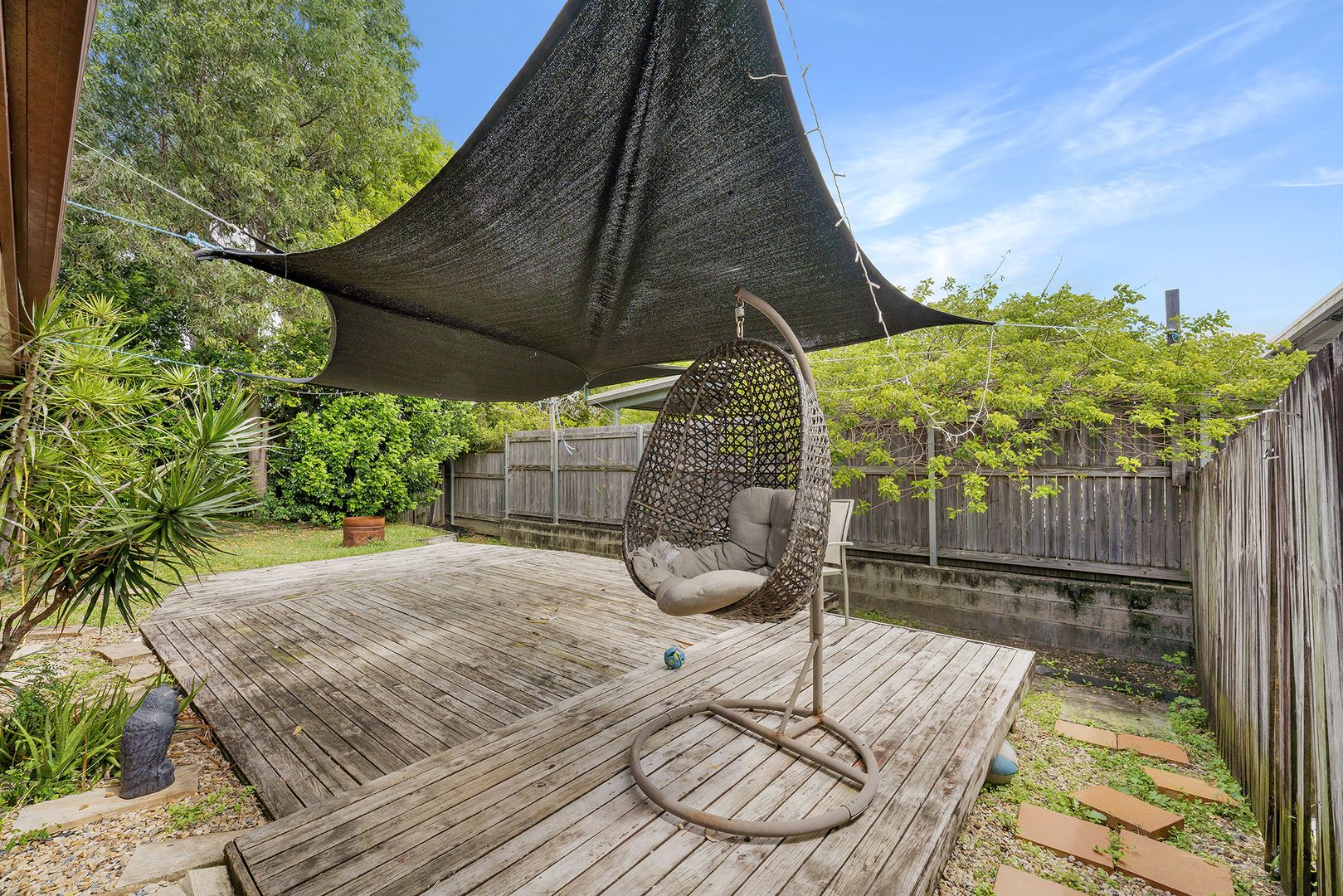 Move through the lounge room on the cream tiles and step outside into an entertainment oasis. This decked and grassed backyard is large enough for any occasion. Surrounded by green trees, this secluded sanctuary is yours to use however you'd like. In addition, get the most out of your hobbies with a garden shed at your disposal.
