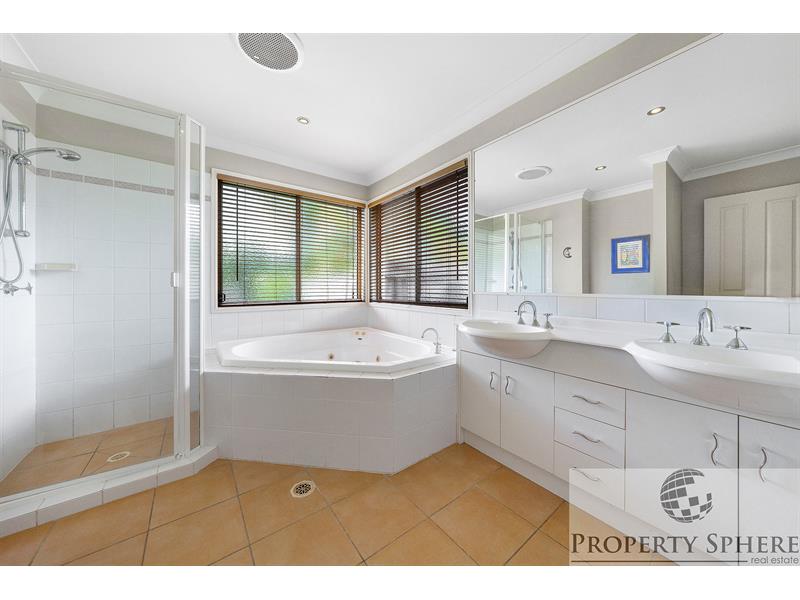 - The main bedroom has a walk-in robe, air conditioning, TV and ensuite with large spa bath plus his and hers basin